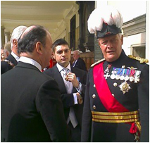 | Rafe with Lord Lyon, King of Arms - the chief herald of Scotland, responsible for all Scottish State Ceremonial and the supreme authority on many Scottish protocol issues. | Rafe in the Pentagon, Washington, D.C. participating in the promotion ceremony for a USAF Major. | Rafe and Lord Walker, the Governor of the Royal Hospital Chelsea, at a wreath-laying ceremony and lunch organised by Rafe. | ||||